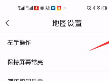4. 第四步进入【地图设置】页面后,根据下图箭头所指,将【左手操作】选项后的圆圈向右滑动,启用该功能。