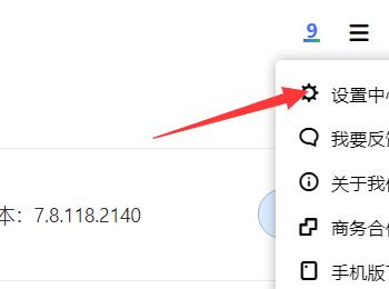 4.第四步,我们可以看到如下图所示的弹出窗口,点击箭头所指的设置中心选项。
