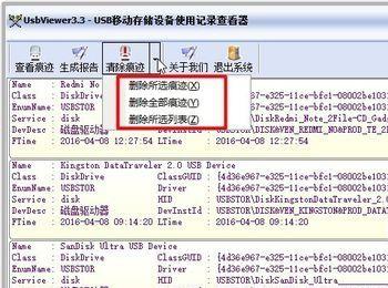 选择 查看痕迹 可以查看我们的USB接口使用记录