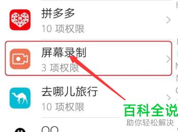 4. 然后在打开的权限管理页面,在应用列表中,找到【屏幕录制】选项,点击