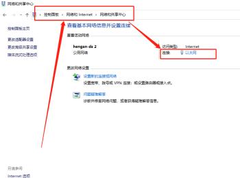 2.第二步,来到网络和Internet页面后,点击网络和共享中心选项,接着点击箭头所指的以太网。