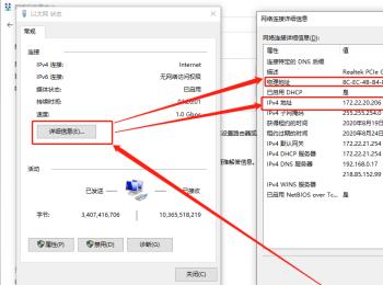 3.第三步,在下图所示的以太网状态页面中,点击箭头所指的详细信息选项,就可以查询到电脑的 ip 地址和 mac 地址了。