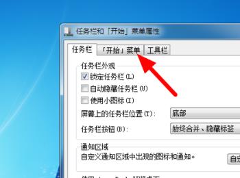 3. 弹出属性窗口,点击上方的【开始菜单】选项
