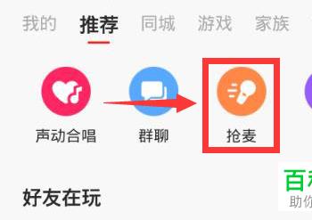 1. 首先第一步打开手机中的【全民K歌】App,根据下图箭头所指,找到并点击【抢麦】选项。