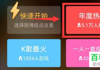 2. 第二步进入【抢麦】页面后,按照需求选择歌曲类型。根据下图箭头所指,小编以【年度热歌】为例。