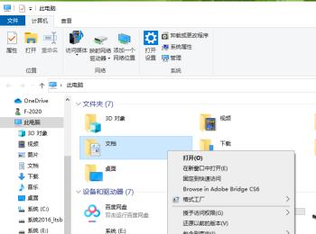 2.第二步,来到下图所示的此电脑页面后,右击文件夹中的文档选项,接着点击弹出窗口中的属性选项。