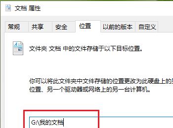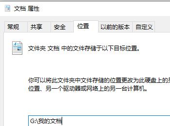 8.第八步,来到下图所示的文档的位置页面后,可以看到成功更改存储位置为”G:\我的文档“了。