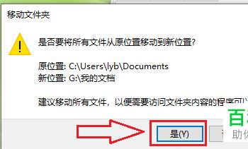 5.第五步,来到下图所示的移动页面后,点击选择想要更改为的文件夹,小编选择了G:\我的文档,接着点击右下角红框中的选择文件夹选项。