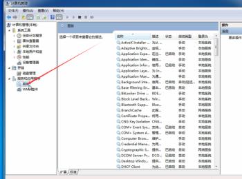 3. 第三步打开【计算机管理】窗口后,根据下图箭头所指,点击左侧【服务】选项。