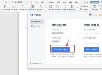 5.第五步,好友双击或者右击打开wps软件,接着打开远程桌面,并输入收到的识别码和密码,然后点击箭头所指的请求远程控制选项,就可以访问文档和数据了。
