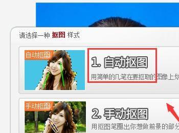 点击抠图笔选项,在弹出的对话框内选择自动抠图选项,如图所示: