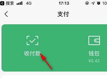 3. 进入支付页面后,点击左上方的【收付款】选项