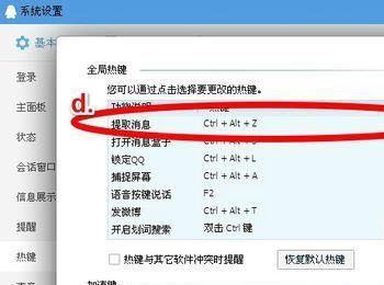 若是亲登陆了两个QQ或更多,这需要更改热键。 a.打开系统设置–基本设置。 b.热键。 c.—设置热键。 d.修改提取信息的热键即可。