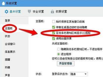 隐藏QQ在任务栏的图标方法是打开系统设置–基本设置—主面板