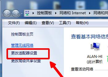 打开网络之后,找到网络和共享中心=-=更改适配器设置