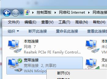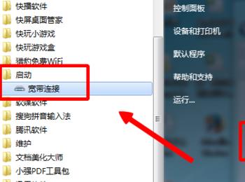 打开网络属性里面的宽带连接之后,把“宽带连接”—拖动到“开始菜单—启动”里面