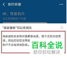 5.第五步,来到下图所示的页面后,可以看到是系统评估推荐设置的商家服务,所以现在不可以自助关闭。