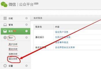 1、服务号的统计有四项功能,前三项和订阅号是一样的,操作和功能也是一样的。只有第四项,接口分析是服务特有的,订阅号是没有的。如下图所示: