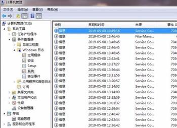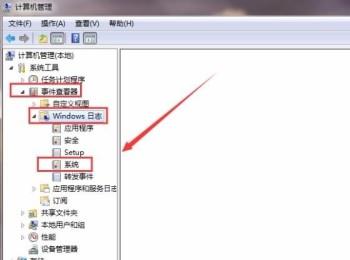 2. 第二步,进入“计算机管理”页面,在左侧导航栏点击事件查看器,接着依次点击windows日志和系统。