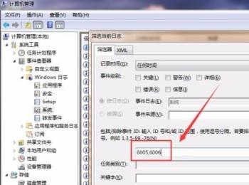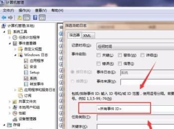 4. 第四步,进入“筛选当前日志”页面,输入想查询的信息的代号,点击确定就可以查看。