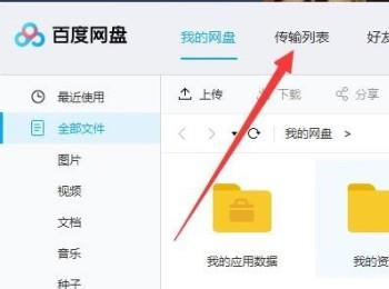 1. 首先,我们打开电脑,然后在电脑中打开百度网盘,当进入主界面之后我们点击上方的“传输列表”。