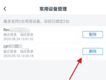 5.第五步,来到下图所示的常用设备管理页面后,点击想要清除数据的设备右边的删除选项。