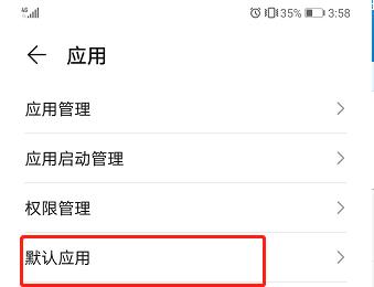 3. 在打开的应用设置页面,选择【默认应用】选项,打开
