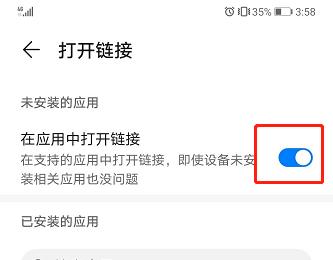 5. 在打开的页面,我们就可以看到【在应用中打开链接】的选项了,最后,将其右侧的开关关闭即可。