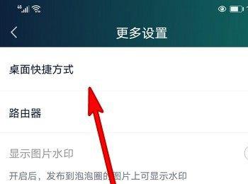 4.第四步,我们可以看到如下图所示的更多设置页面,点击箭头所指的桌面快捷方式选项。