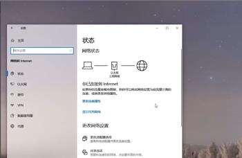 3.在打开的网络和Internet设置页面,点击左侧的状态选项,在右侧,找到更改网络设置下的更改适配器选项,点击