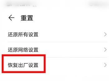 4. 如图,在打开的重置页面,我们就可以看到【恢复出厂设置】的选项了,点击。