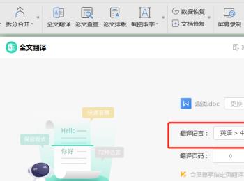 3. 第三步打开【全文翻译】窗口后,根据下图所示,点击【翻译语言】选项。