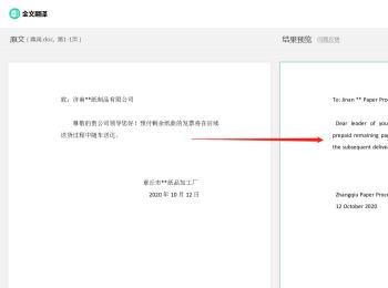 5. 第五步根据下图箭头所指,成功翻译文档。需要注意的是,无法手动更改翻译内容。