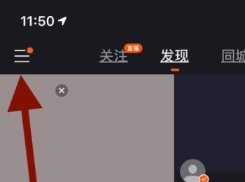 2.第二步,来到下图所示的快手软件主页面后,点击左上角箭头所指的“三”图标。