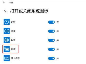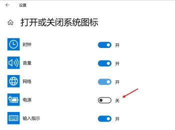 5. 通过滑动右侧的开关就可以选择打开或者关闭电源图标了,根据自己的需要设置即可。