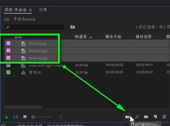 4. 将想要添加的素材文件选中,按住键盘上的 ctrl 键,可以选择多个素材文件。接下来,点击下方的 自动匹配序列图标。