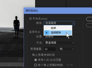 5. 如图,在弹出的序列自动化窗口,点击上方的顺序下拉菜单,有排序或选择顺序两个选项。