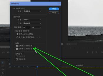 8. 剪辑重叠中的时间,指的是 两个剪辑素材之间的过渡持续时间。 如果序列是30帧每秒时,图中的30则表示转场过渡持续时间为1秒。若想要持续2秒则修改为60。