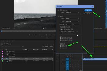 6. 下方的转换栏,勾选上应用默认视频过渡的话,就是素材添加到序列轨道上后,两个素材之间的转场过渡。若取消勾选的话,则没有过渡效果。音频素材也是一样的。