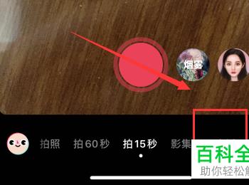 2第二步,来到下图所示的抖音软件主页面后,点击页面底部箭头所指的“+”号。