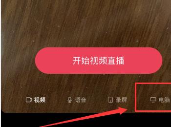 4.第四步,我们可以看到如下图所示的直播页面,点击箭头所指的电脑选项。