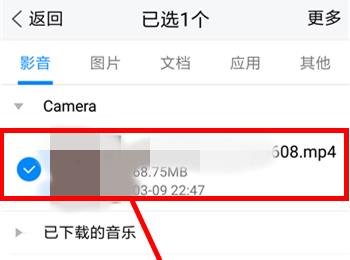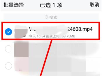 6. 上传结束后,点击刚刚上传的文件。在打开的文件页面中,长按那个文件,点击左下角出现的分享图标,如下图箭头所指处: