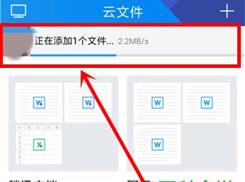5. 之后在云文件页面上方就会显示文件的上传速度,如下图箭头所指处: