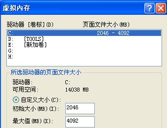 合理设置虚拟内存 方法:打开[控制面板]→[系统]→[高级]-[性能]设置-[高级]-[虚拟内存]更改-在”自定义大小”中填入数值,或把虚拟内存设置到D盘。 说明:一般的最小值是物理内存的1.5倍,最大值是物理内存的3倍;如果您经常运行大型软件的话最小值应该设为(物理内存*1.5*0.2+物理内存*1.5),最大值应为(物理内存*3*0.2+物理内存*3)