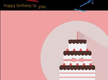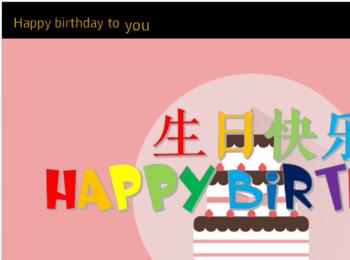 整个片头的动画效果如下,“Happy birthday”空翻出现,然后路径动画向左下方移动同时缩小。接着“生日快乐”挥鞭式出现,然后路径动画右上方移动同时缩小。接着“送给某某的生日祝福”淡出。