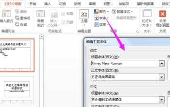 新建Microsoft Powerpoint 2007幻灯片,命名为生日MV,打开PPT,设置PPT大小为4:3. 进入视图-幻灯片母板,自定义主题字体如下图。
