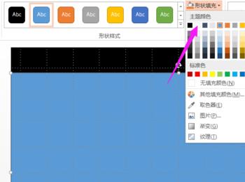 主题母板背景填充黑色,打开视图,勾选网格线。 插入-形状,绘制如下所示的白色矩形,形状轮廓无。