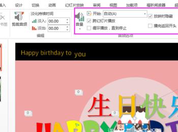 插入音频,设置好自动和跨幻灯片播放,放映时隐藏。 接着在《如何用PPT制作生日MV PPT制作生日礼物(下)》里面,小编会介绍制作歌词的一些简单方法,敬请观看。