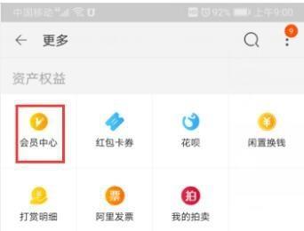 4. 如图,在打开的更多页面,选择“会员中心”选项,点击。