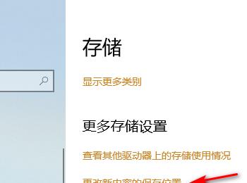 5. 在右侧打开的存储设置页面,找到更改新内容的保存位置的选项,点击。
